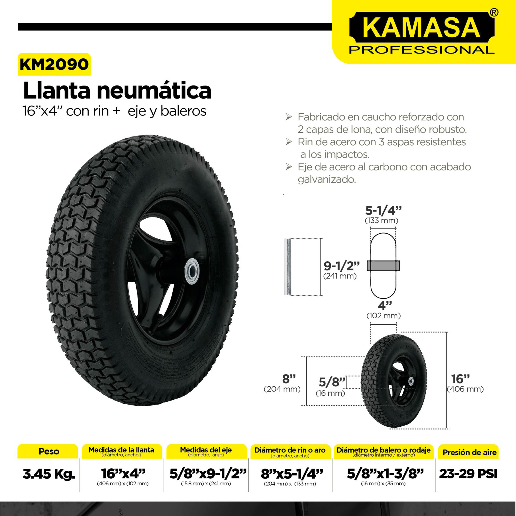 LLANTA NEUMATICA MOD. TRUPER + EJE Y BARLEROS (KM2090) - KAMASA